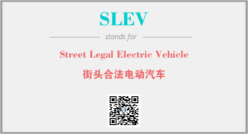 上述内容是“Street Legal Electric Vehicle”作为“SLEV”的缩写,解释为“街头合法电动汽车”时的信息,以及英文缩略词SLEV所代表的英文单词,其对应的中文拼音、详细解释以及在英文中的流行度和相关分类、应用领域及应用示例等。