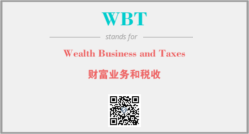 上述内容是“Wealth Business and Taxes”作为“WBT”的缩写,解释为“财富业务和税收”时的信息,以及英文缩略词WBT所代表的英文单词,其对应的中文拼音、详细解释以及在英文中的流行度和相关分类、应用领域及应用示例等。