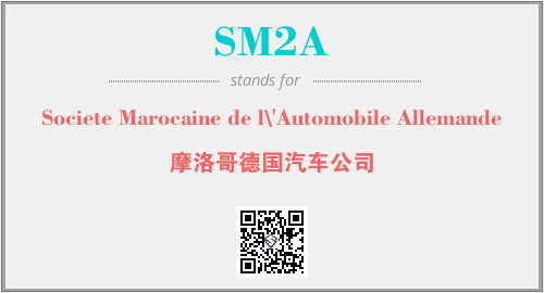 上述内容是“Societe Marocaine de l\'Automobile Allemande”作为“SM2A”的缩写,解释为“摩洛哥德国汽车公司”时的信息,以及英文缩略词SM2A所代表的英文单词,其对应的中文拼音、详细解释以及在英文中的流行度和相关分类、应用领域及应用示例等。