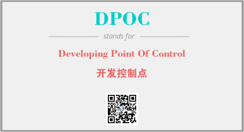 英文缩略词“DPOC”经常作为“Developing Point Of Control”的英文缩写来使用,中文表示:“开发控制点”。本文将详细介绍英文缩写词DPOC所代表英文单词,其对应的中文拼音、详细解释以及在英语中的流行度。此外,还有关于缩略词DPOC的分类、应用领域及相关应用示例等。
