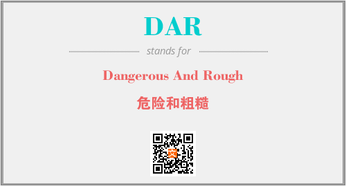 上述内容是“Dangerous And Rough”作为“DAR”的缩写,解释为“危险和粗糙”时的信息,以及英文缩略词DAR所代表的英文单词,其对应的中文拼音、详细解释以及在英文中的流行度和相关分类、应用领域及应用示例等。