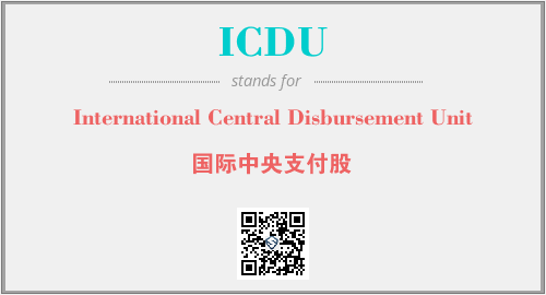 英文缩略词“ICDU”经常作为“International Central Disbursement Unit”的英文缩写来使用,中文表示:“国际中央支付股”。本文将详细介绍英文缩写词ICDU所代表英文单词,其对应的中文拼音、详细解释以及在英语中的流行度。此外,还有关于缩略词ICDU的分类、应用领域及相关应用示例等。