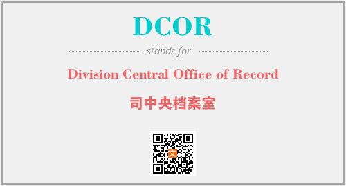 上述内容是“Division Central Office of Record”作为“DCOR”的缩写,解释为“司中央档案室”时的信息,以及英文缩略词DCOR所代表的英文单词,其对应的中文拼音、详细解释以及在英文中的流行度和相关分类、应用领域及应用示例等。