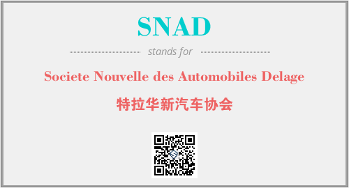 上述内容是“Societe Nouvelle des Automobiles Delage”作为“SNAD”的缩写,解释为“特拉华新汽车协会”时的信息,以及英文缩略词SNAD所代表的英文单词,其对应的中文拼音、详细解释以及在英文中的流行度和相关分类、应用领域及应用示例等。