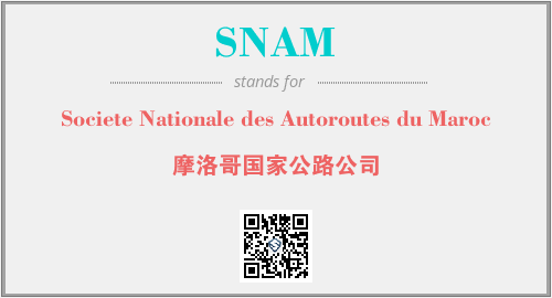 上述内容是“Societe Nationale des Autoroutes du Maroc”作为“SNAM”的缩写,解释为“摩洛哥国家公路公司”时的信息,以及英文缩略词SNAM所代表的英文单词,其对应的中文拼音、详细解释以及在英文中的流行度和相关分类、应用领域及应用示例等。