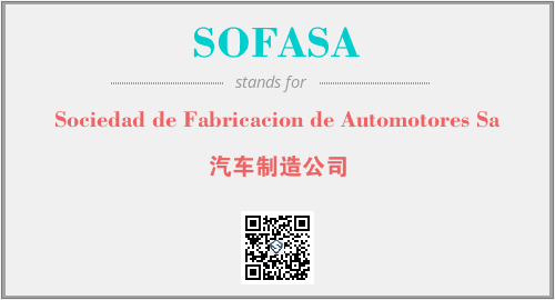 上述内容是“Sociedad de Fabricacion de Automotores Sa”作为“SOFASA”的缩写,解释为“汽车制造公司”时的信息,以及英文缩略词SOFASA所代表的英文单词,其对应的中文拼音、详细解释以及在英文中的流行度和相关分类、应用领域及应用示例等。