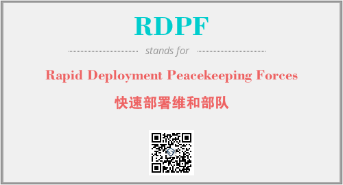 上述内容是“Rapid Deployment Peacekeeping Forces”作为“RDPF”的缩写,解释为“快速部署维和部队”时的信息,以及英文缩略词RDPF所代表的英文单词,其对应的中文拼音、详细解释以及在英文中的流行度和相关分类、应用领域及应用示例等。