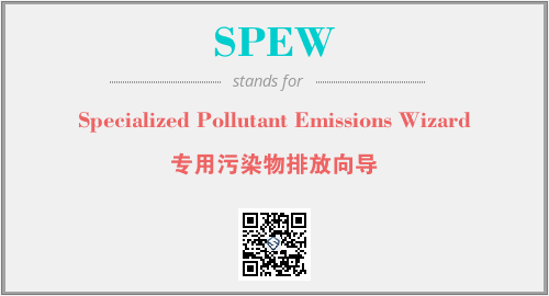 以上为Specialized Pollutant Emissions Wizard英文缩略词SPEW的中文解释,以及该英文缩写在英语的流行度、分类和应用领域方面的信息。