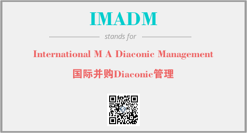 英文缩略词“IMADM”经常作为“International M A Diaconic Management”的英文缩写来使用,中文表示:“国际并购Diaconic管理”。本文将详细介绍英文缩写词IMADM所代表英文单词,其对应的中文拼音、详细解释以及在英语中的流行度。此外,还有关于缩略词IMADM的分类、应用领域及相关应用示例等。
