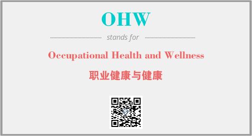上述内容是“Occupational Health and Wellness”作为“OHW”的缩写,解释为“职业健康与健康”时的信息,以及英文缩略词OHW所代表的英文单词,其对应的中文拼音、详细解释以及在英文中的流行度和相关分类、应用领域及应用示例等。