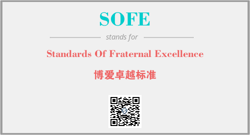 上述内容是“Standards Of Fraternal Excellence”作为“SOFE”的缩写,解释为“博爱卓越标准”时的信息,以及英文缩略词SOFE所代表的英文单词,其对应的中文拼音、详细解释以及在英文中的流行度和相关分类、应用领域及应用示例等。