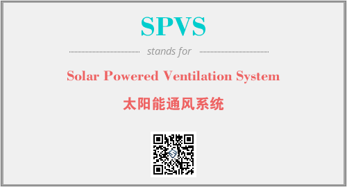 上述内容是“Solar Powered Ventilation System”作为“SPVS”的缩写,解释为“太阳能通风系统”时的信息,以及英文缩略词SPVS所代表的英文单词,其对应的中文拼音、详细解释以及在英文中的流行度和相关分类、应用领域及应用示例等。