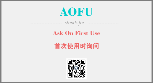 英文缩略词“AOFU”经常作为“Ask On First Use”的英文缩写来使用,中文表示:“首次使用时询问”。本文将详细介绍英文缩写词AOFU所代表英文单词,其对应的中文拼音、详细解释以及在英语中的流行度。此外,还有关于缩略词AOFU的分类、应用领域及相关应用示例等。