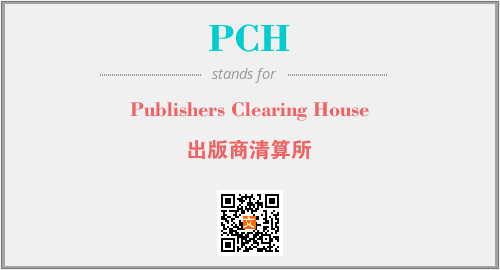 英文缩略词“PCH”经常作为“Publishers Clearing House”的英文缩写来使用,中文表示:“出版商清算所”。本文将详细介绍英文缩写词PCH所代表英文单词,其对应的中文拼音、详细解释以及在英语中的流行度。此外,还有关于缩略词PCH的分类、应用领域及相关应用示例等。