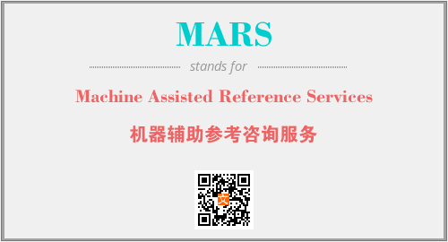 上述内容是“Machine Assisted Reference Services”作为“MARS”的缩写,解释为“机器辅助参考咨询服务”时的信息,以及英文缩略词MARS所代表的英文单词,其对应的中文拼音、详细解释以及在英文中的流行度和相关分类、应用领域及应用示例等。