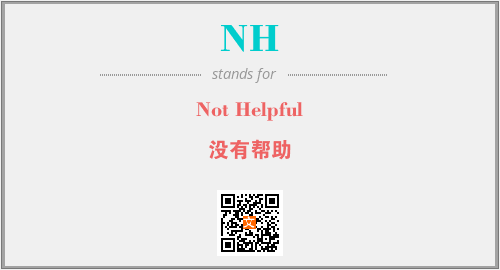 上述内容是“Not Helpful”作为“NH”的缩写,解释为“没有帮助”时的信息,以及英文缩略词NH所代表的英文单词,其对应的中文拼音、详细解释以及在英文中的流行度和相关分类、应用领域及应用示例等。