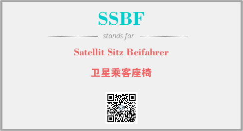 英文缩略词“SSBF”经常作为“Satellit Sitz Beifahrer”的英文缩写来使用,中文表示:“卫星乘客座椅”。本文将详细介绍英文缩写词SSBF所代表英文单词,其对应的中文拼音、详细解释以及在英语中的流行度。此外,还有关于缩略词SSBF的分类、应用领域及相关应用示例等。