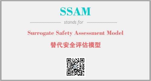 英文缩略词“SSAM”经常作为“Surrogate Safety Assessment Model”的英文缩写来使用,中文表示:“替代安全评估模型”。本文将详细介绍英文缩写词SSAM所代表英文单词,其对应的中文拼音、详细解释以及在英语中的流行度。此外,还有关于缩略词SSAM的分类、应用领域及相关应用示例等。