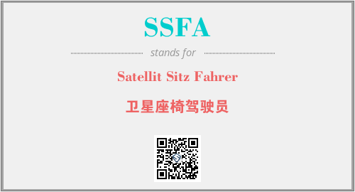 英文缩略词“SSFA”经常作为“Satellit Sitz Fahrer”的英文缩写来使用,中文表示:“卫星座椅驾驶员”。本文将详细介绍英文缩写词SSFA所代表英文单词,其对应的中文拼音、详细解释以及在英语中的流行度。此外,还有关于缩略词SSFA的分类、应用领域及相关应用示例等。