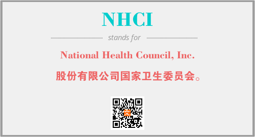 上述内容是“National Health Council, Inc.”作为“NHCI”的缩写,解释为“股份有限公司国家卫生委员会。”时的信息,以及英文缩略词NHCI所代表的英文单词,其对应的中文拼音、详细解释以及在英文中的流行度和相关分类、应用领域及应用示例等。