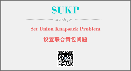 上述内容是“Set Union Knapsack Problem”作为“SUKP”的缩写,解释为“设置联合背包问题”时的信息,以及英文缩略词SUKP所代表的英文单词,其对应的中文拼音、详细解释以及在英文中的流行度和相关分类、应用领域及应用示例等。