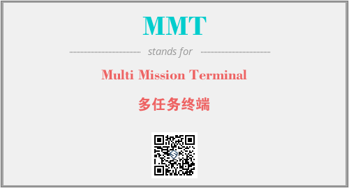 英文缩略词“MMT”经常作为“Multi Mission Terminal”的英文缩写来使用,中文表示:“多任务终端”。本文将详细介绍英文缩写词MMT所代表英文单词,其对应的中文拼音、详细解释以及在英语中的流行度。此外,还有关于缩略词MMT的分类、应用领域及相关应用示例等。