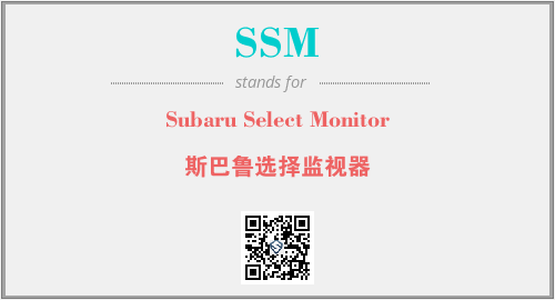 英文缩略词“SSM”经常作为“Subaru Select Monitor”的英文缩写来使用,中文表示:“斯巴鲁选择监视器”。本文将详细介绍英文缩写词SSM所代表英文单词,其对应的中文拼音、详细解释以及在英语中的流行度。此外,还有关于缩略词SSM的分类、应用领域及相关应用示例等。