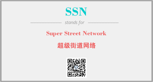 以上为Super Street Network英文缩略词SSN的中文解释,以及该英文缩写在英语的流行度、分类和应用领域方面的信息。