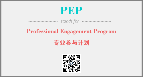 以上为Professional Engagement Program英文缩略词PEP的中文解释,以及该英文缩写在英语的流行度、分类和应用领域方面的信息。