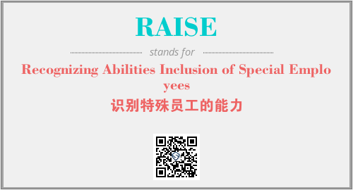 以上为Recognizing Abilities Inclusion of Special Employees英文缩略词RAISE的中文解释,以及该英文缩写在英语的流行度、分类和应用领域方面的信息。
