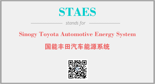 上述内容是“Sinogy Toyota Automotive Energy System”作为“STAES”的缩写,解释为“国能丰田汽车能源系统”时的信息,以及英文缩略词STAES所代表的英文单词,其对应的中文拼音、详细解释以及在英文中的流行度和相关分类、应用领域及应用示例等。