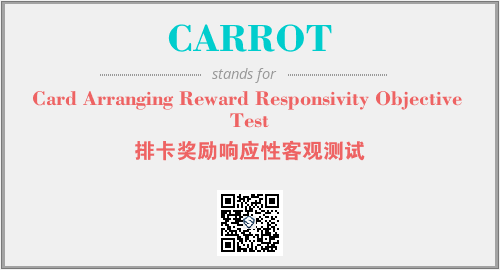 上述内容是“Card Arranging Reward Responsivity Objective Test”作为“CARROT”的缩写,解释为“排卡奖励响应性客观测试”时的信息,以及英文缩略词CARROT所代表的英文单词,其对应的中文拼音、详细解释以及在英文中的流行度和相关分类、应用领域及应用示例等。