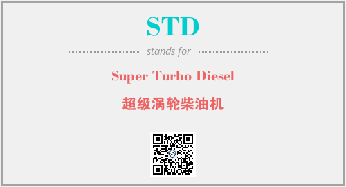 上述内容是“Super Turbo Diesel”作为“STD”的缩写,解释为“超级涡轮柴油机”时的信息,以及英文缩略词STD所代表的英文单词,其对应的中文拼音、详细解释以及在英文中的流行度和相关分类、应用领域及应用示例等。