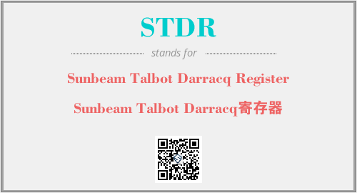 以上为Sunbeam Talbot Darracq Register英文缩略词STDR的中文解释,以及该英文缩写在英语的流行度、分类和应用领域方面的信息。