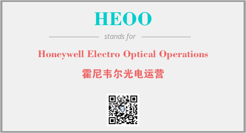 上述内容是“Honeywell Electro Optical Operations”作为“HEOO”的缩写,解释为“霍尼韦尔光电运营”时的信息,以及英文缩略词HEOO所代表的英文单词,其对应的中文拼音、详细解释以及在英文中的流行度和相关分类、应用领域及应用示例等。