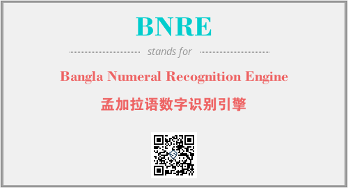 上述内容是“Bangla Numeral Recognition Engine”作为“BNRE”的缩写,解释为“孟加拉语数字识别引擎”时的信息,以及英文缩略词BNRE所代表的英文单词,其对应的中文拼音、详细解释以及在英文中的流行度和相关分类、应用领域及应用示例等。