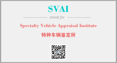 上述内容是“Specialty Vehicle Appraisal Institute”作为“SVAI”的缩写,解释为“特种车辆鉴定所”时的信息,以及英文缩略词SVAI所代表的英文单词,其对应的中文拼音、详细解释以及在英文中的流行度和相关分类、应用领域及应用示例等。