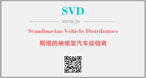 上述内容是“Scandinavian Vehicle Distributors”作为“SVD”的缩写,解释为“斯堪的纳维亚汽车经销商”时的信息,以及英文缩略词SVD所代表的英文单词,其对应的中文拼音、详细解释以及在英文中的流行度和相关分类、应用领域及应用示例等。