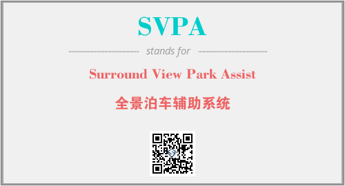 上述内容是“Surround View Park Assist”作为“SVPA”的缩写,解释为“全景泊车辅助系统”时的信息,以及英文缩略词SVPA所代表的英文单词,其对应的中文拼音、详细解释以及在英文中的流行度和相关分类、应用领域及应用示例等。
