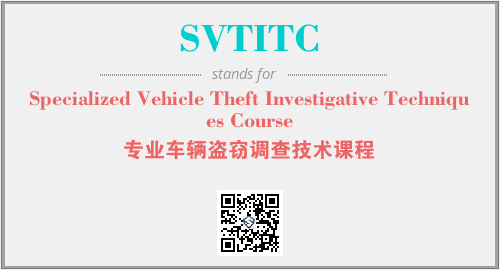 以上为Specialized Vehicle Theft Investigative Techniques Course英文缩略词SVTITC的中文解释,以及该英文缩写在英语的流行度、分类和应用领域方面的信息。