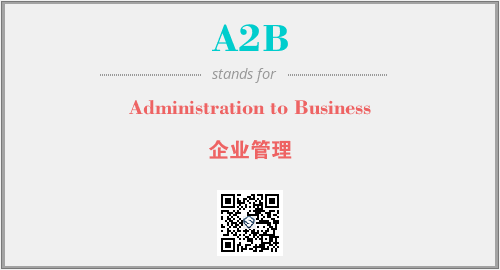 英文缩略词“A2B”经常作为“Administration to Business”的英文缩写来使用,中文表示:“企业管理”。本文将详细介绍英文缩写词A2B所代表英文单词,其对应的中文拼音、详细解释以及在英语中的流行度。此外,还有关于缩略词A2B的分类、应用领域及相关应用示例等。