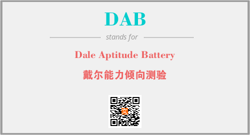 以上为Dale Aptitude Battery英文缩略词DAB的中文解释,以及该英文缩写在英语的流行度、分类和应用领域方面的信息。