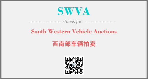 英文缩略词“SWVA”经常作为“South Western Vehicle Auctions”的英文缩写来使用,中文表示:“西南部车辆拍卖”。本文将详细介绍英文缩写词SWVA所代表英文单词,其对应的中文拼音、详细解释以及在英语中的流行度。此外,还有关于缩略词SWVA的分类、应用领域及相关应用示例等。