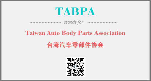 英文缩略词“TABPA”经常作为“Taiwan Auto Body Parts Association”的英文缩写来使用,中文表示:“台湾汽车零部件协会”。本文将详细介绍英文缩写词TABPA所代表英文单词,其对应的中文拼音、详细解释以及在英语中的流行度。此外,还有关于缩略词TABPA的分类、应用领域及相关应用示例等。
