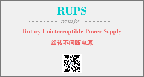 英文缩略词“RUPS”经常作为“Rotary Uninterruptible Power Supply”的英文缩写来使用,中文表示:“旋转不间断电源”。本文将详细介绍英文缩写词RUPS所代表英文单词,其对应的中文拼音、详细解释以及在英语中的流行度。此外,还有关于缩略词RUPS的分类、应用领域及相关应用示例等。