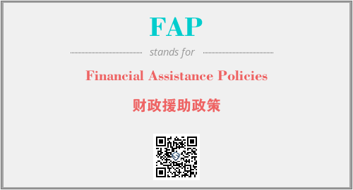 上述内容是“Financial Assistance Policies”作为“FAP”的缩写,解释为“财政援助政策”时的信息,以及英文缩略词FAP所代表的英文单词,其对应的中文拼音、详细解释以及在英文中的流行度和相关分类、应用领域及应用示例等。