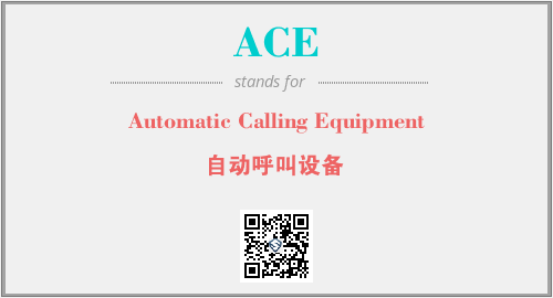 英文缩略词“ACE”经常作为“Automatic Calling Equipment”的英文缩写来使用,中文表示:“自动呼叫设备”。本文将详细介绍英文缩写词ACE所代表英文单词,其对应的中文拼音、详细解释以及在英语中的流行度。此外,还有关于缩略词ACE的分类、应用领域及相关应用示例等。