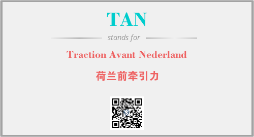 英文缩略词“TAN”经常作为“Traction Avant Nederland”的英文缩写来使用,中文表示:“荷兰前牵引力”。本文将详细介绍英文缩写词TAN所代表英文单词,其对应的中文拼音、详细解释以及在英语中的流行度。此外,还有关于缩略词TAN的分类、应用领域及相关应用示例等。