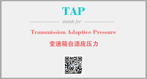 上述内容是“Transmission Adaptive Pressure”作为“TAP”的缩写,解释为“变速箱自适应压力”时的信息,以及英文缩略词TAP所代表的英文单词,其对应的中文拼音、详细解释以及在英文中的流行度和相关分类、应用领域及应用示例等。