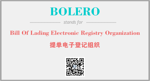 英文缩略词“BOLERO”经常作为“Bill Of Lading Electronic Registry Organization”的英文缩写来使用,中文表示:“提单电子登记组织”。本文将详细介绍英文缩写词BOLERO所代表英文单词,其对应的中文拼音、详细解释以及在英语中的流行度。此外,还有关于缩略词BOLERO的分类、应用领域及相关应用示例等。
